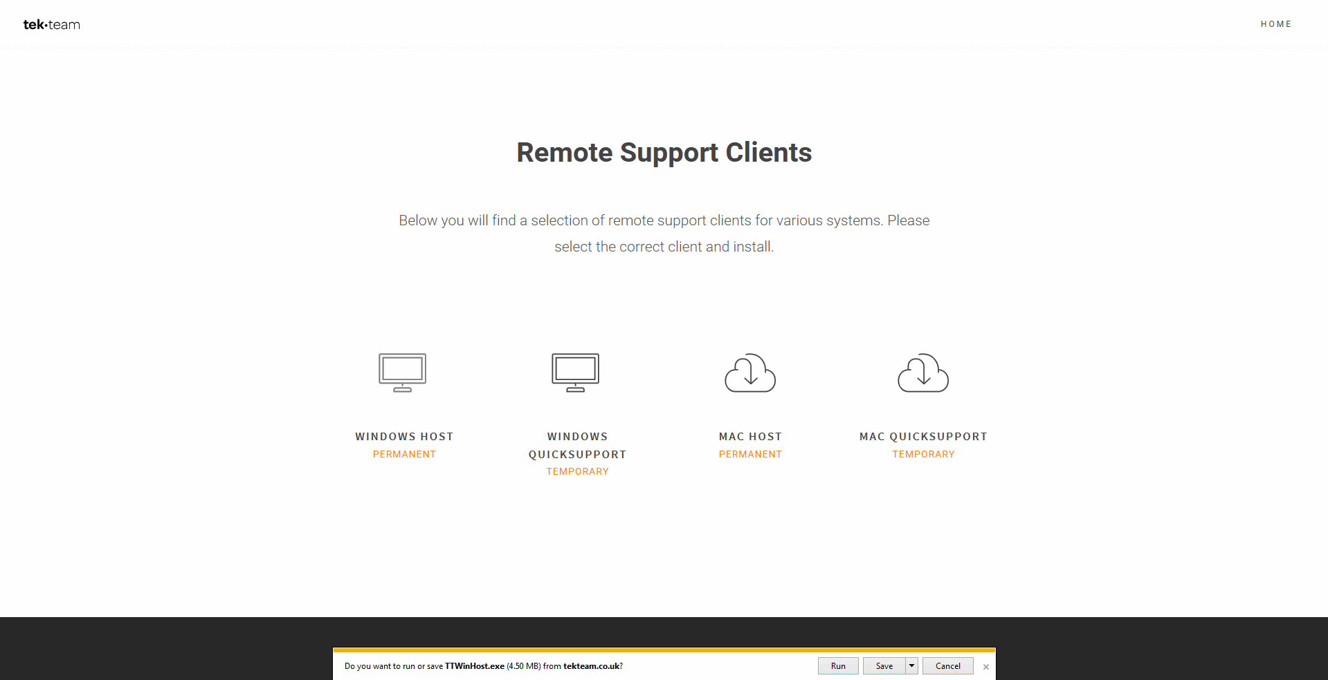 Installing the windows host client is simple and will allow us to remotly support your computer without interaction.