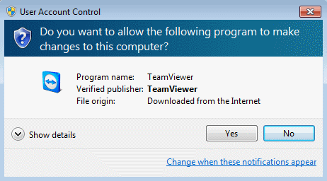 After running the file you may recive a User Account Control warning dialog, you will need to accept this to allow the remote support client to install
