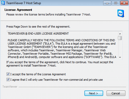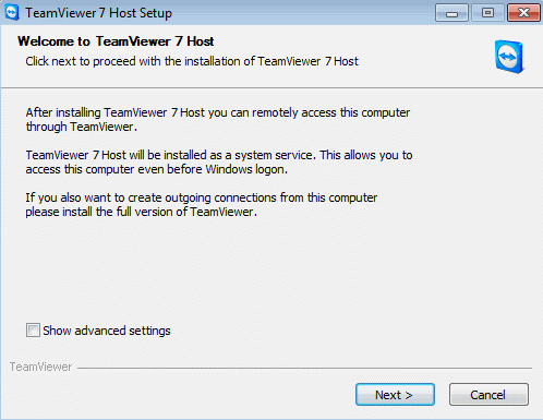 You are about to install our customised version of Teamviewer Host , this will allow us to take control of your computer remotly, if you are happy to proceed, please press Next