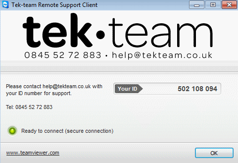 Once the client has successfully installed you should see this window, Please make a note of your ID